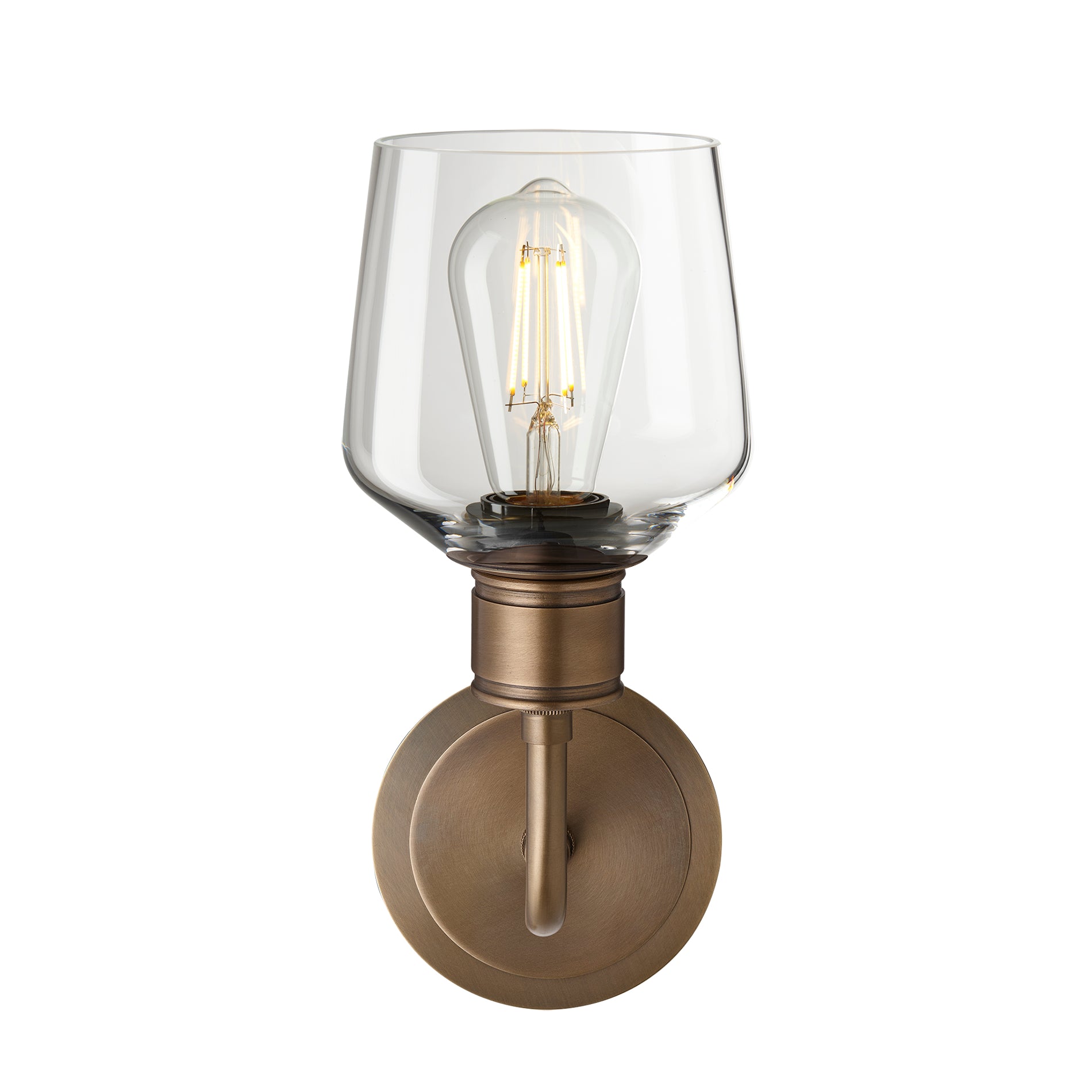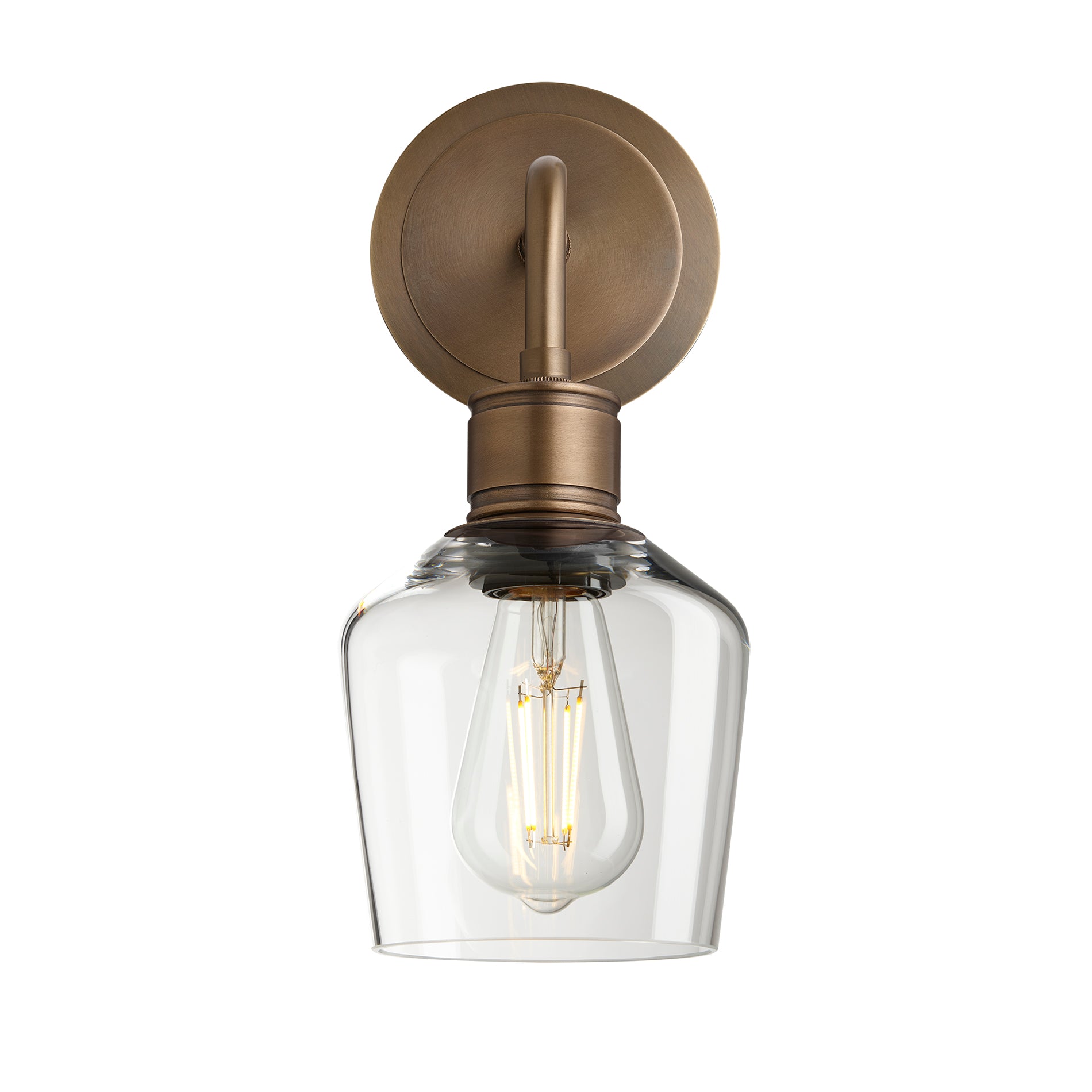 Albany Glass Schoolhouse Single Wall Light, 5.5 inches, with a clear glass shade and bronze holder in an angled view Albany Glass Schoolhouse Single Wall Light, 5.5 inches, with a clear glass shade and bronze holder in a front view Albany Glass Schoolhouse Single Wall Light, 5.5 inches, with a clear glass shade and brass holder in an angled view Albany Glass Schoolhouse Single Wall Light, 5.5 inches, with a clear glass shade and brass holder in a front view Albany Glass Schoolhouse Single Wall Light, 5.5 inches, with a clear glass shade facing upwards and bronze holder in a front view Albany Glass Schoolhouse Single Wall Light, 5.5 inches, with a clear glass shade facing upwards and brass holder in a front view
