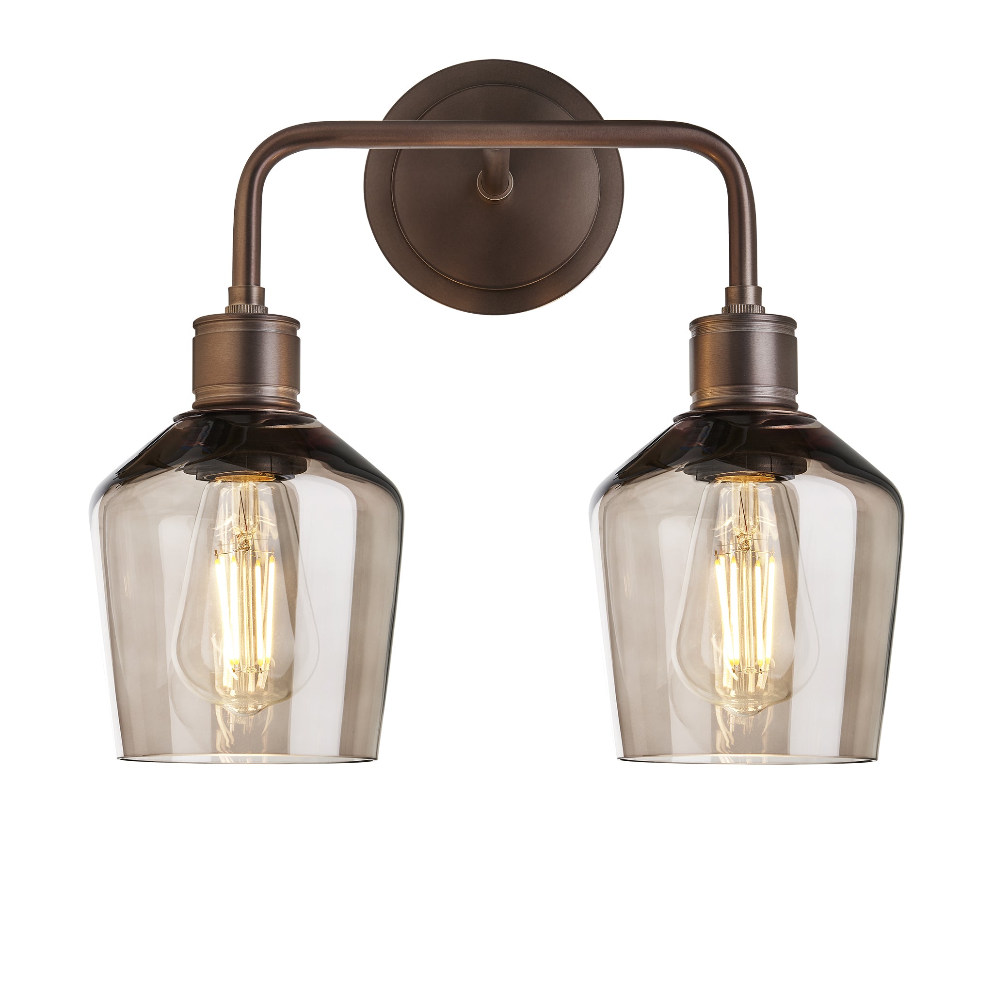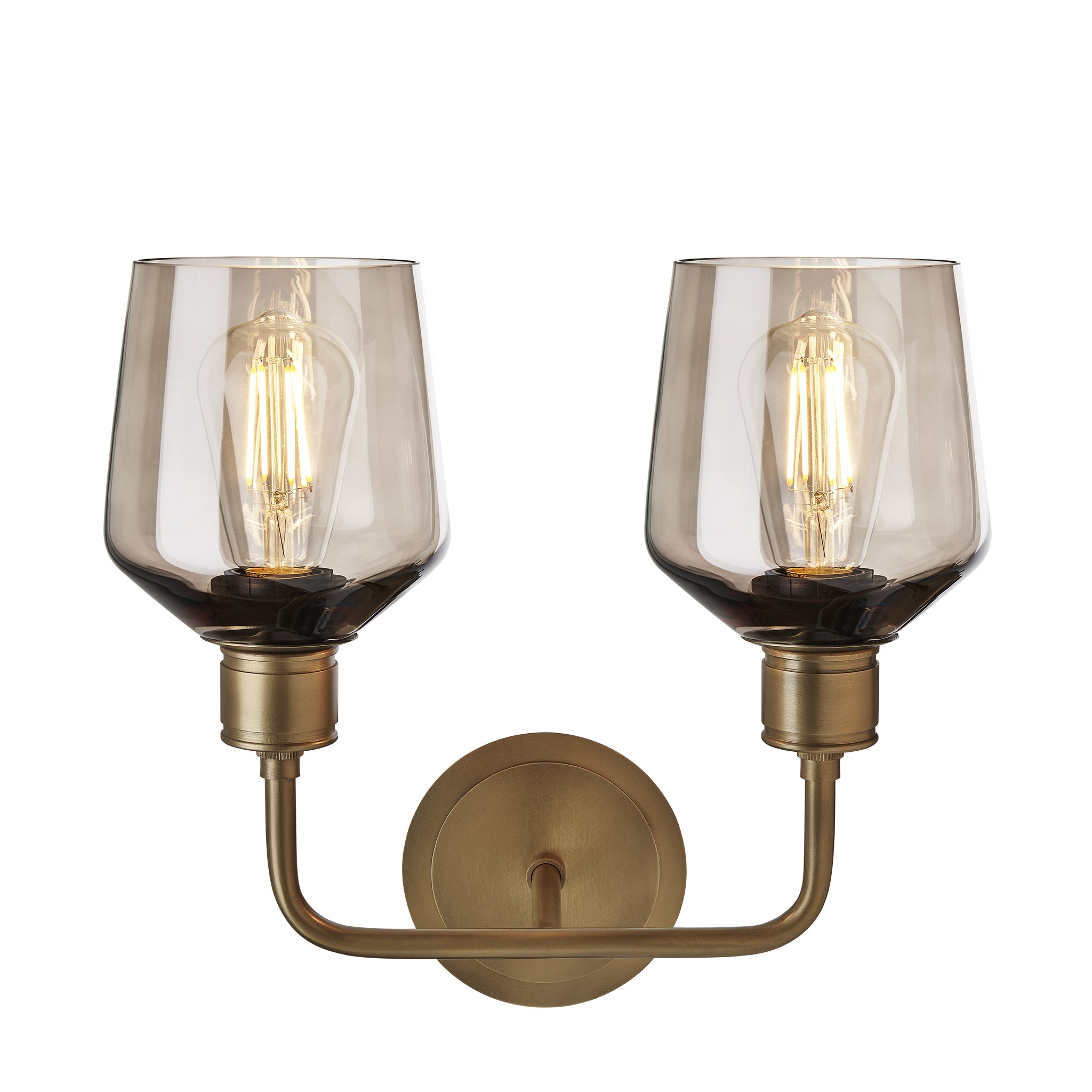 A classic finish with opulent motifs. Add the finishing touch to your dream space with the Double Albany Smoked Glass Schoolhouse Wall Light. This ornate holder available in both dazzling  bronze and elegant brass, producing a bold impression against the wall with remarkable depth. The timeless shade blends beautifully with our contemporary holder for a sophisticated and distinct finish. The schoolhouse shade is styled with sharp, dynamic curves, producing sophisticated shapes.