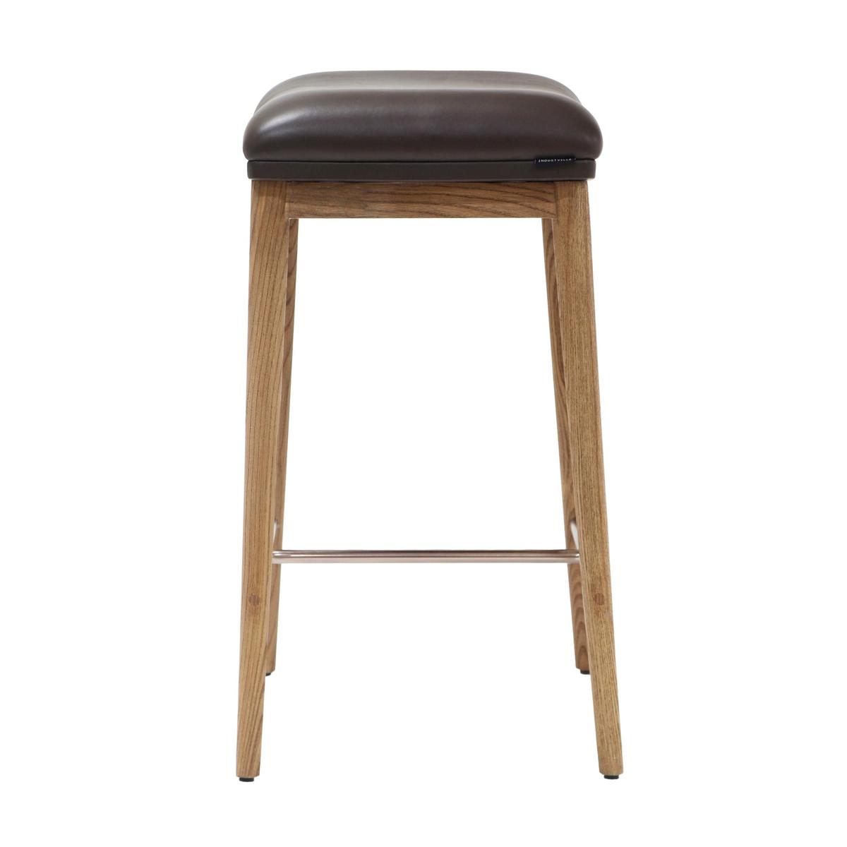 Timeless sophistication. Refresh your kitchen or home bar with the Auburn  Wooden Counter Height Stool. This modern stool features a black finish, ash wooden construction with bronze details and a leather cushion in either black or brown real leather.