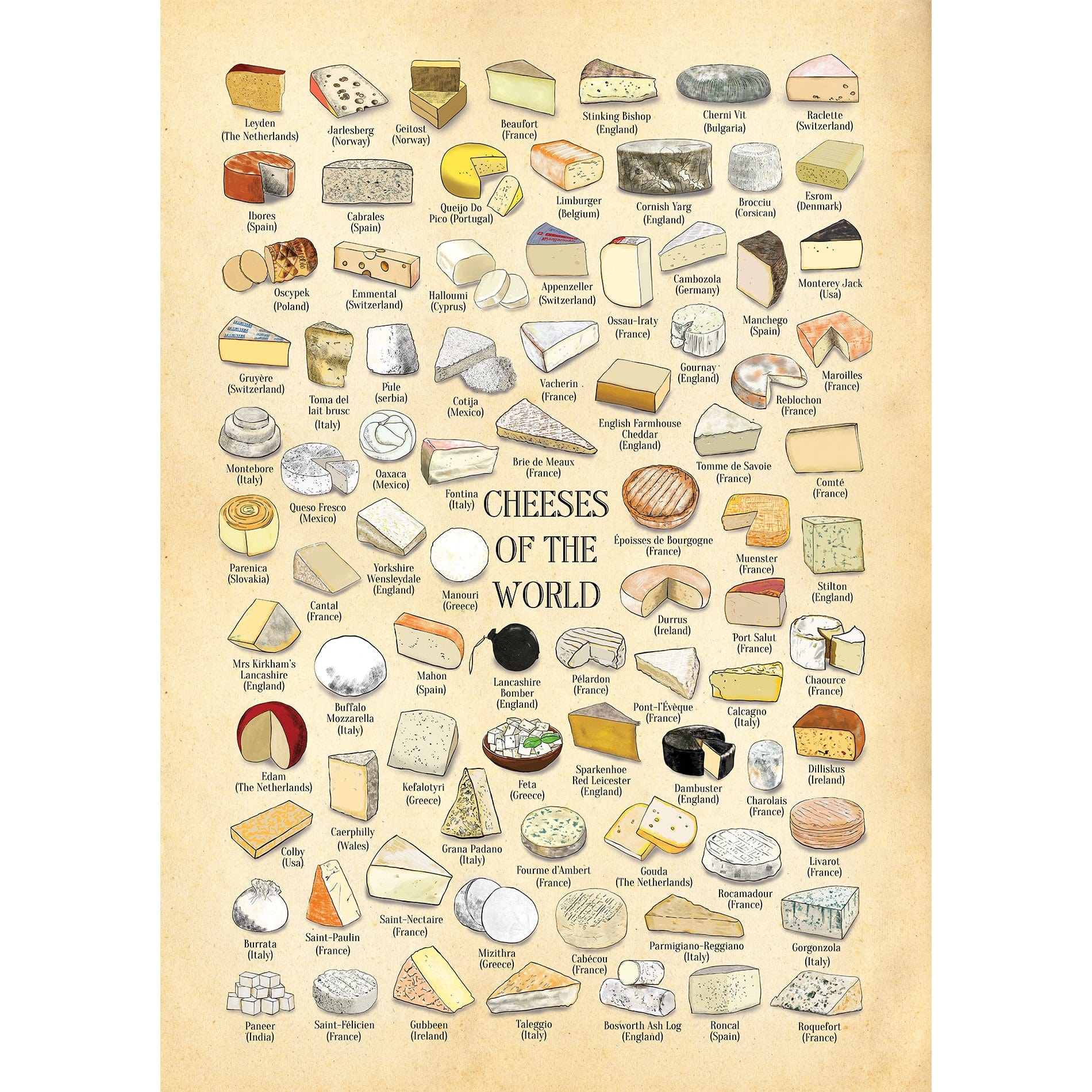 Cheeses Of The World Poster – Cheese Poster, Cheese Wall Art, Cheeses Of The World, Cheese Print.