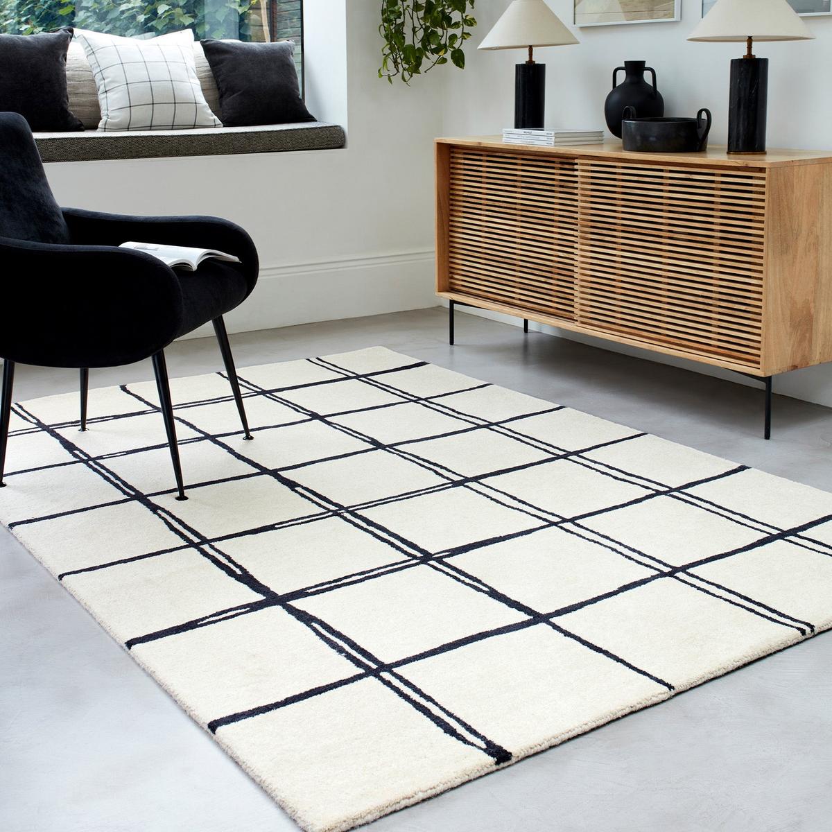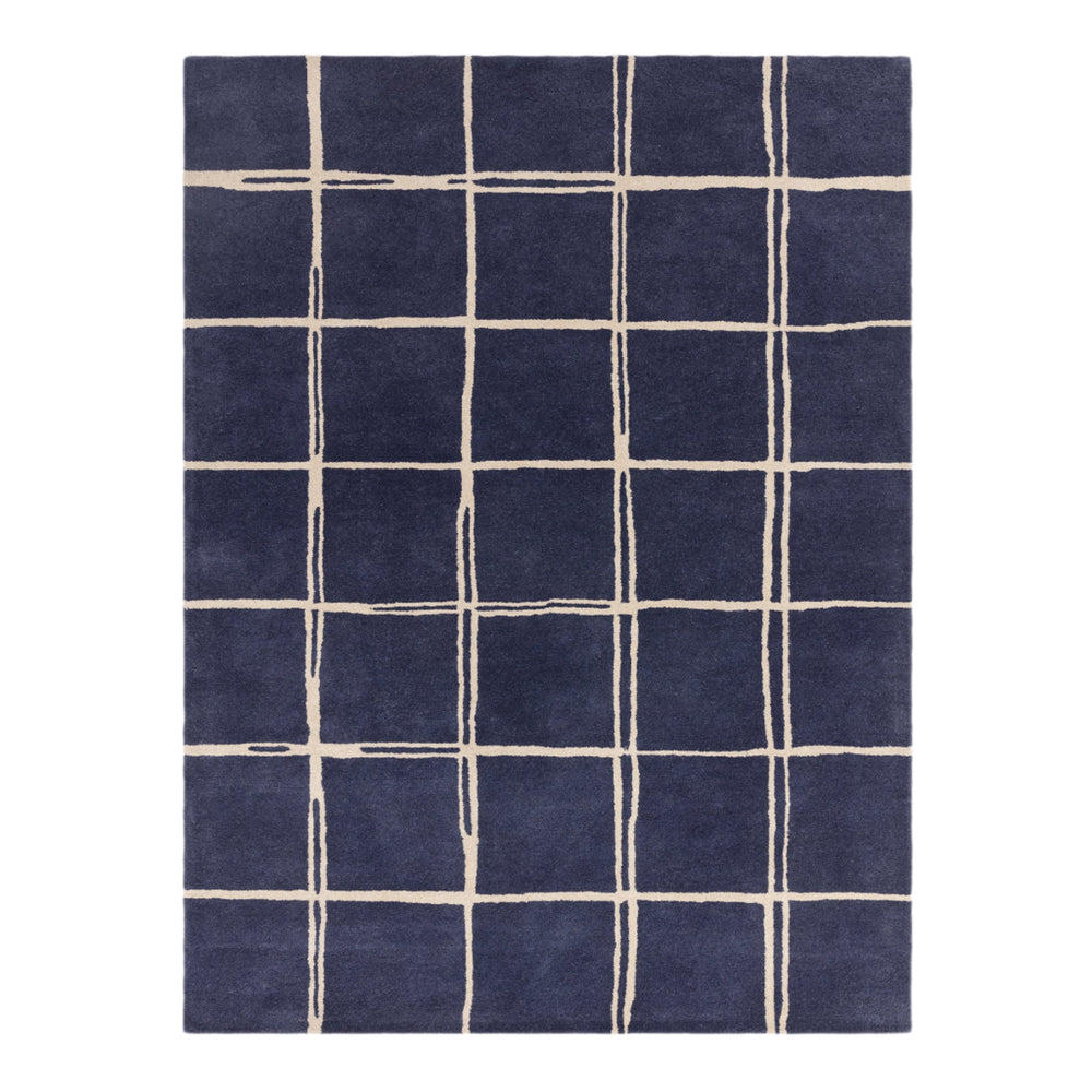 The Cubitt Hand Tufted Wool Rug in Blue & Black, a stylish addition to contemporary interiors. Meticulously crafted, this rug showcases a contemporary geometric pattern in a serene blue hue, adding a touch of modern elegance to any space.