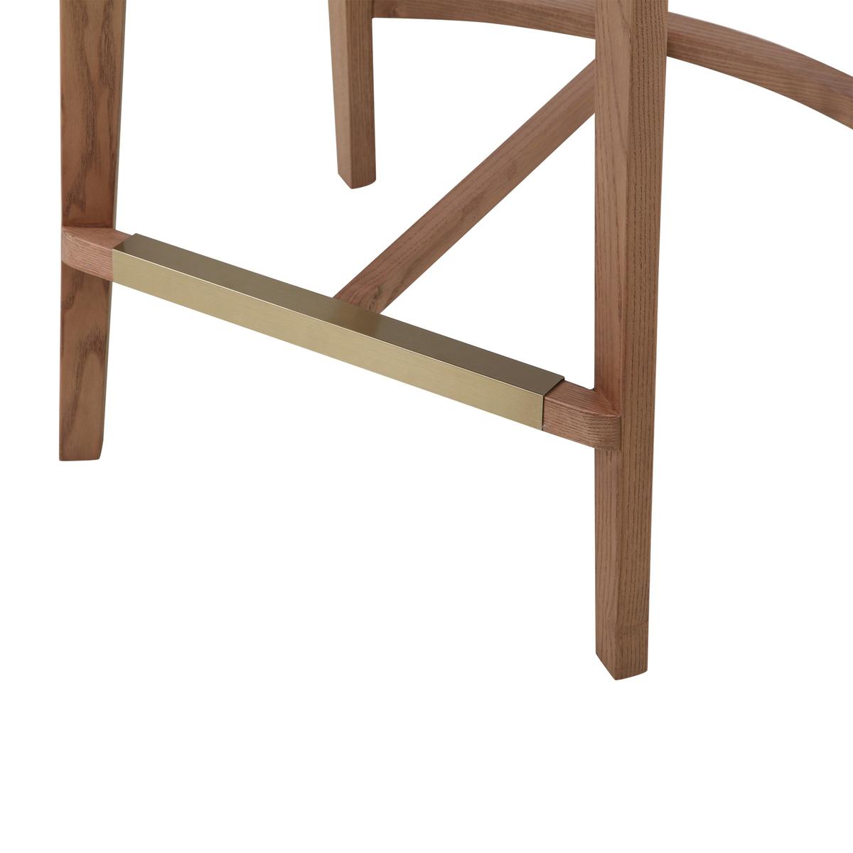 Classical shape in a modern light. Celebrate your individualism with the Hamble Black Wooden Counter Height Bar Stool with Backrest in Natural Chenille. Styled with a wide backrest for remarkable comfort, this Ashwood stool evokes classical kitchen seating with a familiar shape, underlined by rich, warming textures.