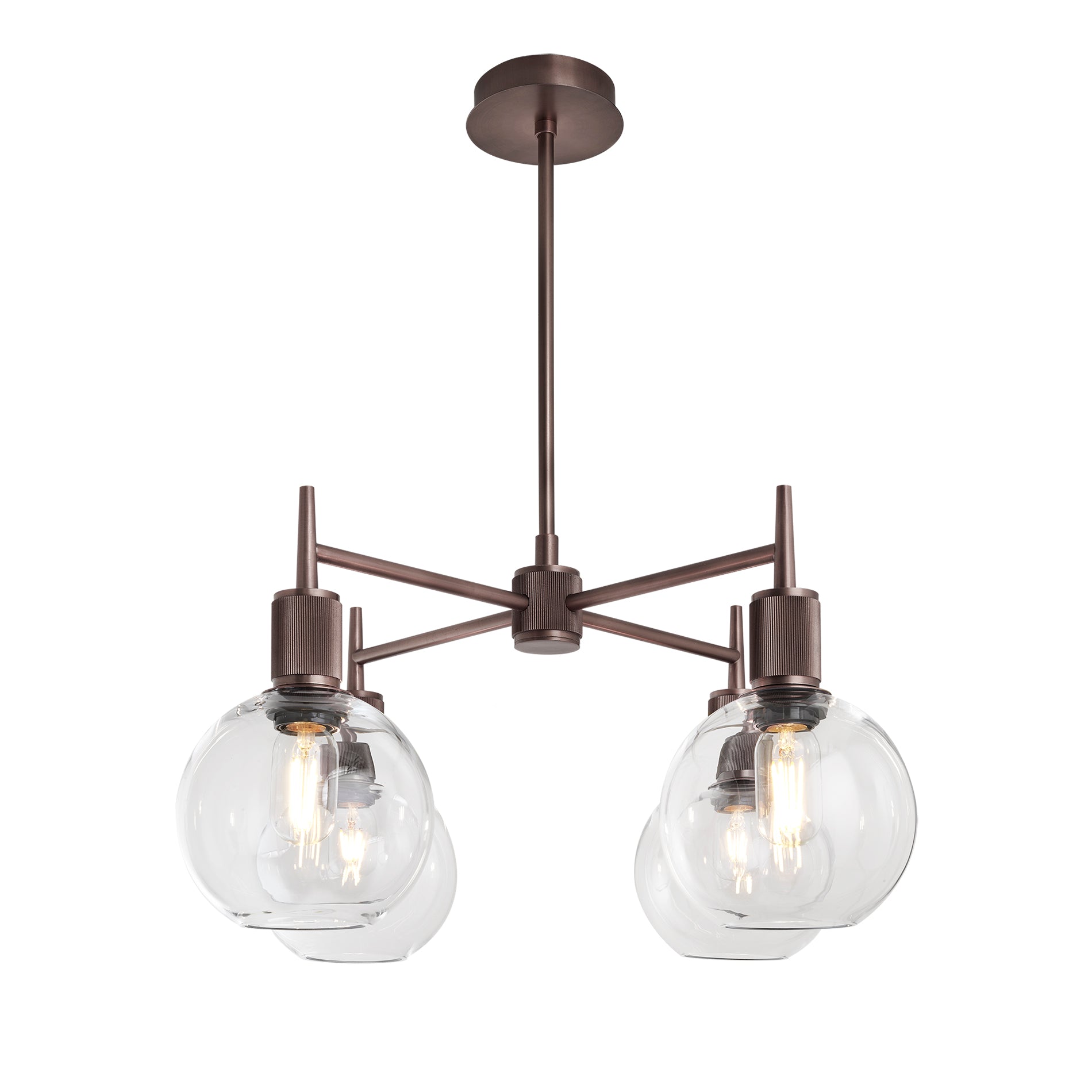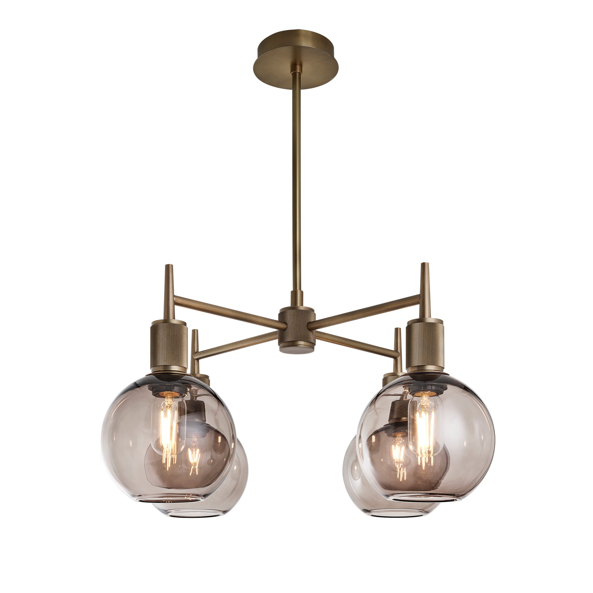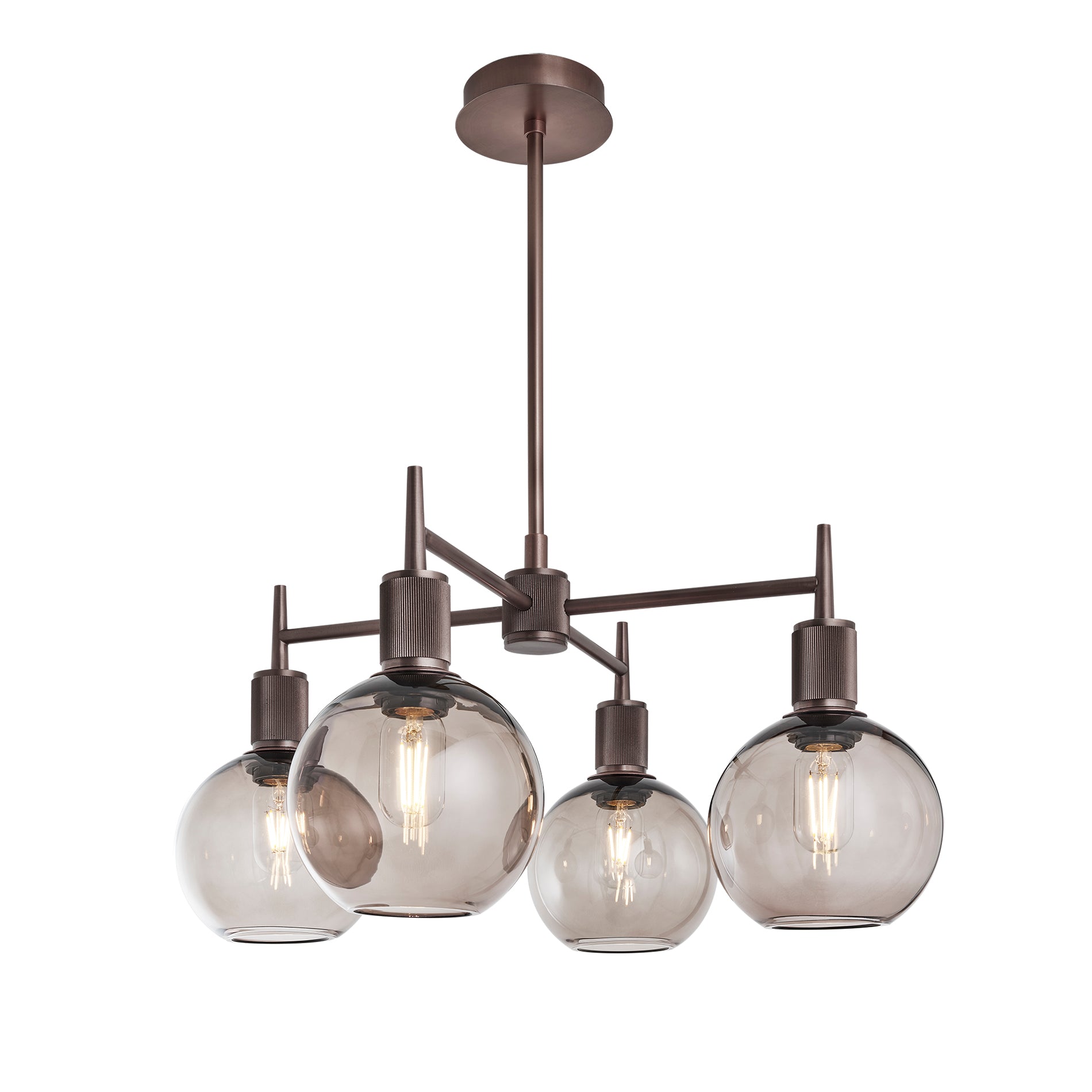 Designer note: With its sculptural silhouette and balanced symmetry, this 4-arm globe pendant brings a quiet confidence to larger spaces. The smoky glass softens the light, while the clean metal structure keeps the look grounded. It’s ideal above dining tables or in open-plan spaces where you want lighting to feel considered but not overpowering.