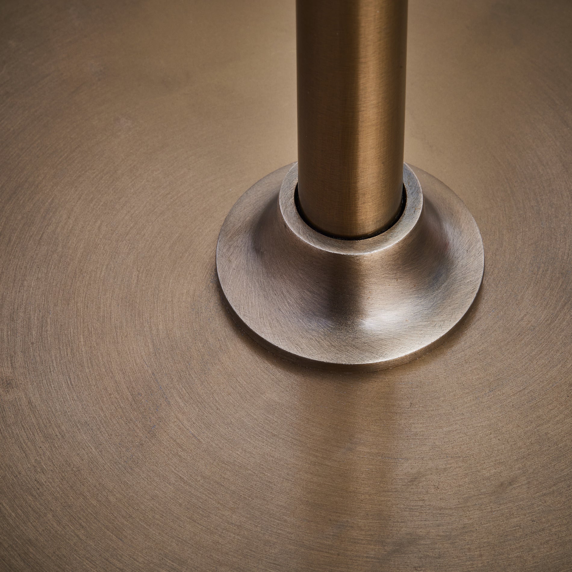 Contemporary sophistication. Instantly transform your interior dynamic with the Henley Floor Lamp in Brass and Bronze. The handcrafted brass silhouette has a radiant finish, providing any space with much needed depth, especially in the evening. The understated shape enriches any space sleek, confident and modernistic character. Shown here in brass, this floor lamp is also available in bronze.