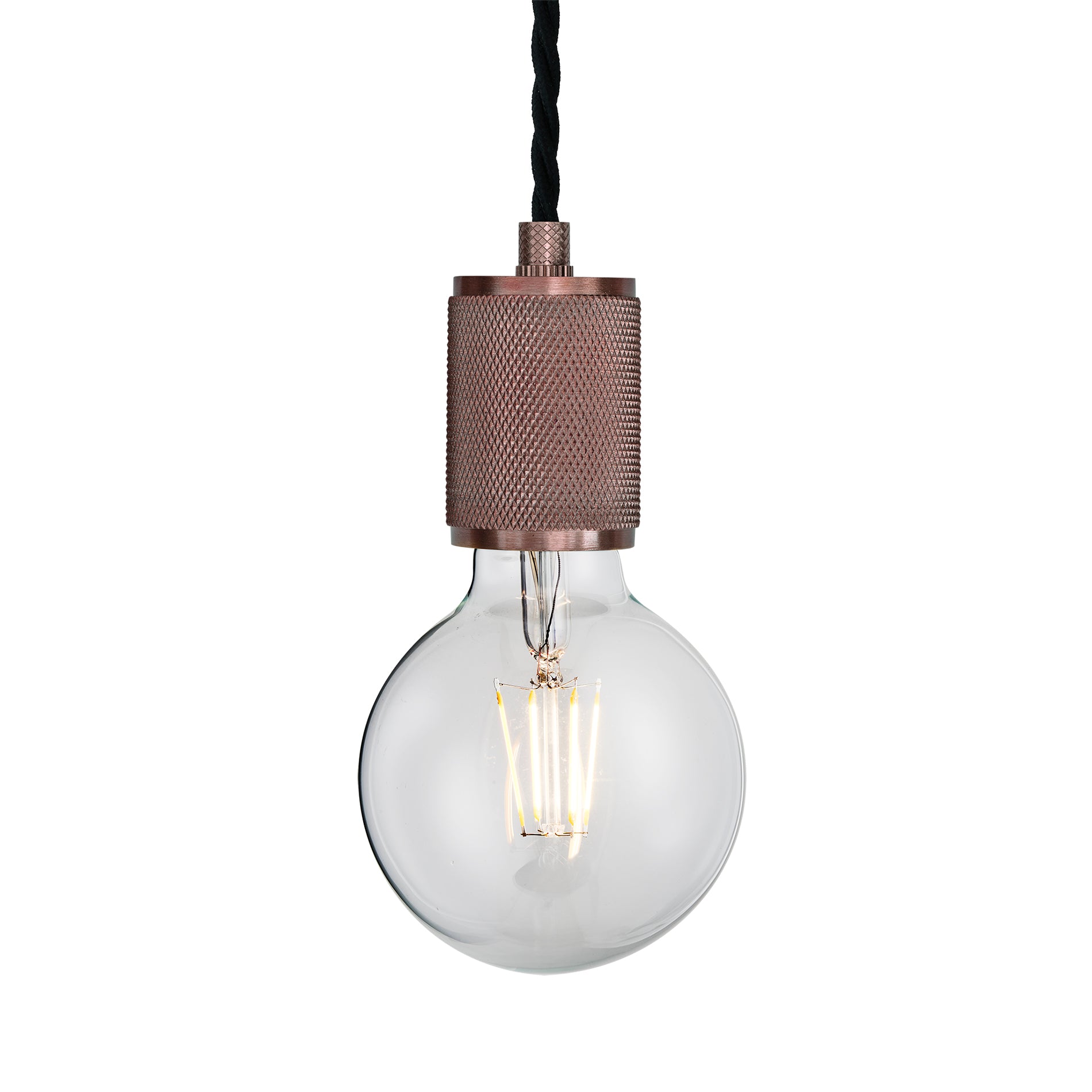 Our versatile Knurled Edison 1 wire pendant is available with brass and black holder finishes, allowing you to choose a light that is unique to you. The metallic fixture provides a striking contrast to exposed bulbs, serving to highlight feature pieces within your home.