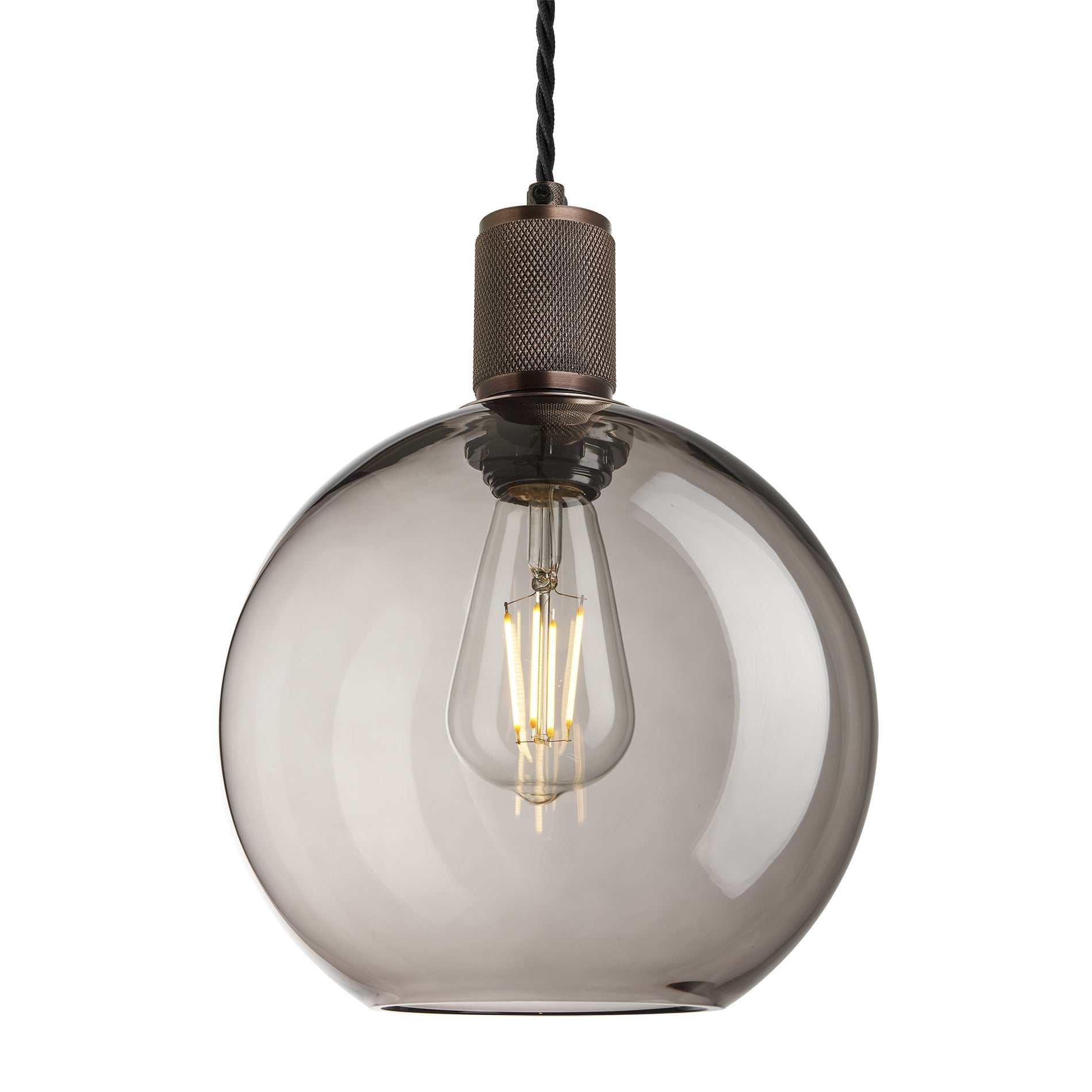 Clear Glass and Black Holder Globe Pendant Knurled Holder KN-GLGLP9-CL-BKH Clear Glass and Brass Holder Globe Pendant Knurled Holder KN-GLGLP9-CL-BH Clear Glass Shade Globe 9 inch Smoked Glass Mocha with Black Holder Globe Pendant Knurled Holder KN-SGL-GLP9-MO-BKH Smoked Glass Mocha with Black Holder Globe Pendant Knurled Holder KN-SGL-GLP9-MO-BKH Smoked Glass Mocha with Brass Holder Globe Pendant Knurled Holder KN-SGL-GLP9-MO-BH Smoked Glass Mocha with Brass Holder Globe Pendant Knurled Holder KN-SGL-GLP9-MO-BH Smoked Glass Mocha with Bronze Holder Globe Pendant Knurled Holder KN-SGL-GLP9-MO-BH Smoked Glass Mocha Globe Shade 9 Inch Bronze Knurled Edison Cord Set ES E27 Bulb Holder with Ring and Fabric Flex, Product code is KN-ECS-BZ Knurled Dome Pendant Light - 8 Inch - Pewter Industville Black Knurled Dome Pendant Holder - 13 Inch - Industville Smoked Glass Mocha shade KN-SGL-GLP9-MO-BKH