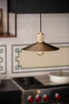 This textured Knurled pendant holder is paired with a smooth sloped metal shade. Handcrafted using traditional techniques. Complete with adjustable fabric flex wire and matching ceiling rose.