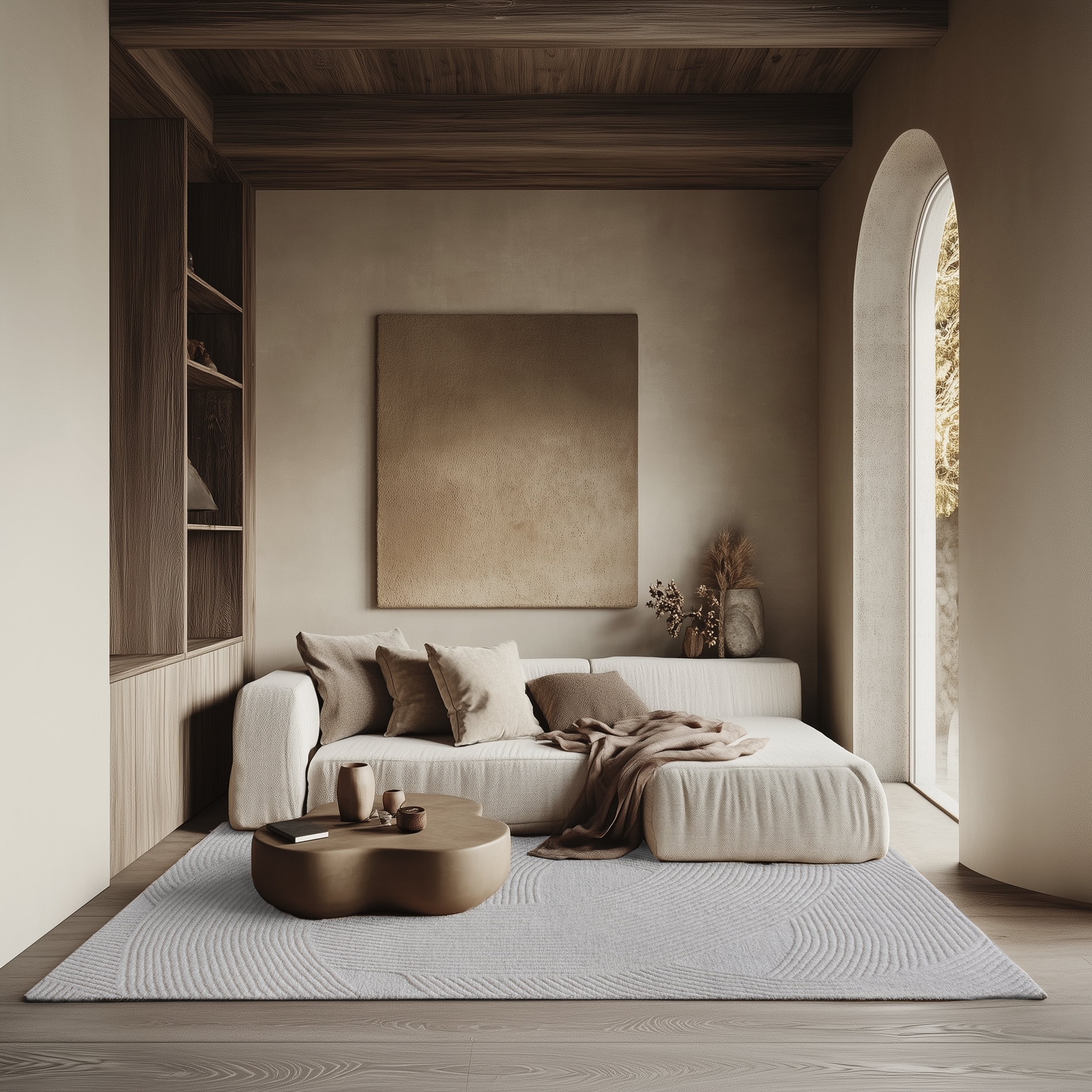 Delicate strokes. Style your living with the Otley Hand Tufted Wool Rug in Ivory and Natural. This plush design is accentuated by thick brushstrokes and warming hues. Abstract shapes create a remarkably layered textured, producing a more fluid and calming ambience around your space. Also available in Natural tones.