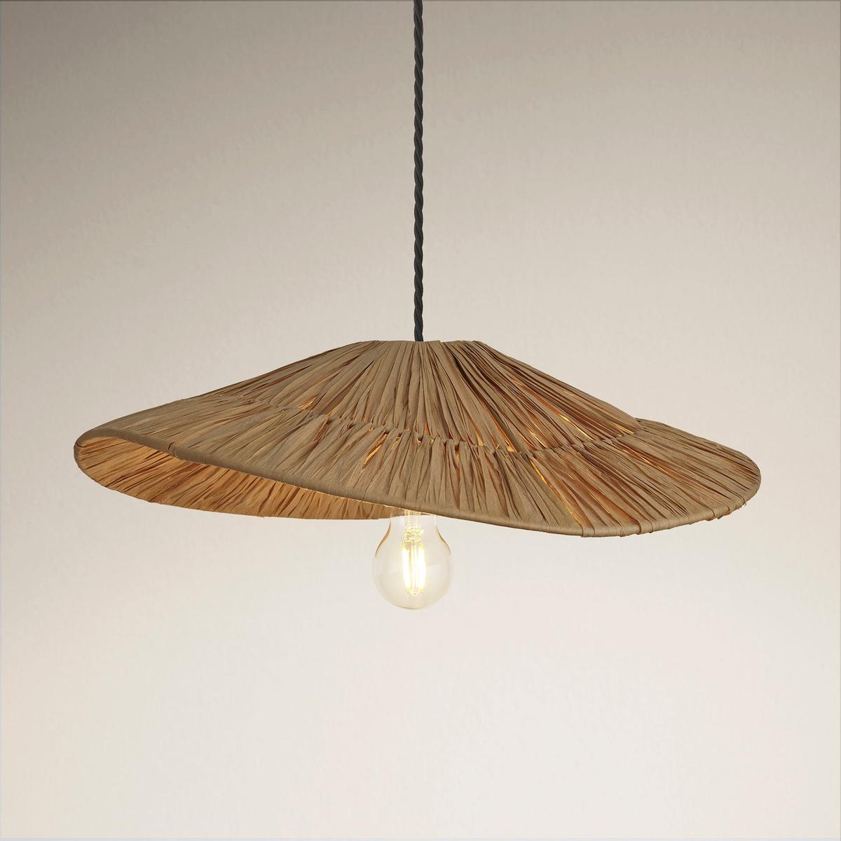 Currently 1M Black Fabric - TwistedIlluminate your space with the rustic charm of our Natural Raffia Ceiling Pendant Light, expertly handcrafted using sustainably sourced materials. Available in two sizes – 20-inch and 27-inch – both boasting a distinctive Hat shape, this oversized fixture exudes an authentic, relaxed ambiance perfect for both residential and commercial settings.