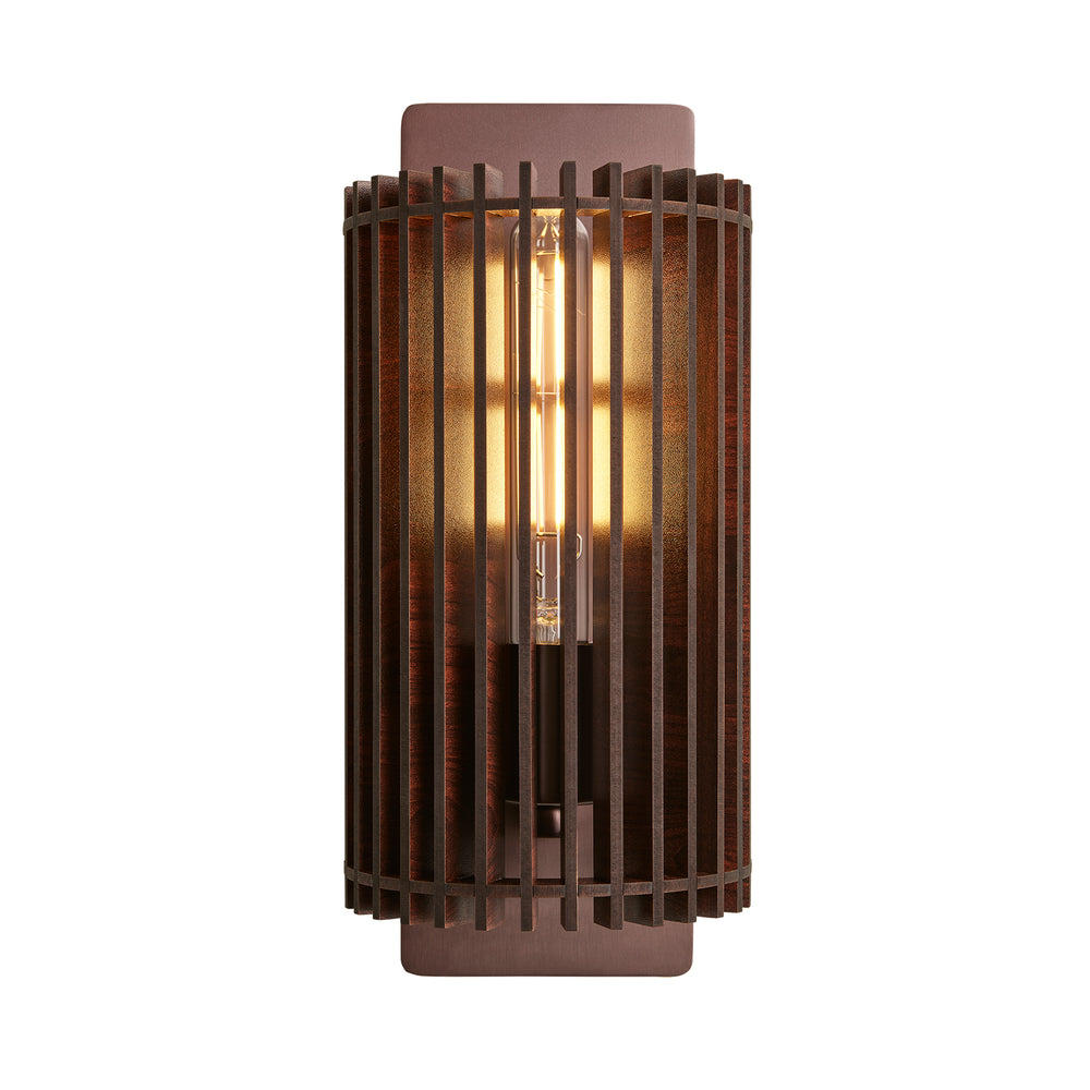 Designer note: The shade brings a modern take on natural materials with its sleek cylindrical frame and slatted wooden inspired style. Designed to cast a soft, diffused glow, it creates subtle patterns of light and shadow for added depth. Ideal for accenting hallways, living spaces, or cosy nooks, this wall light blends warmth and structure effortlessly.