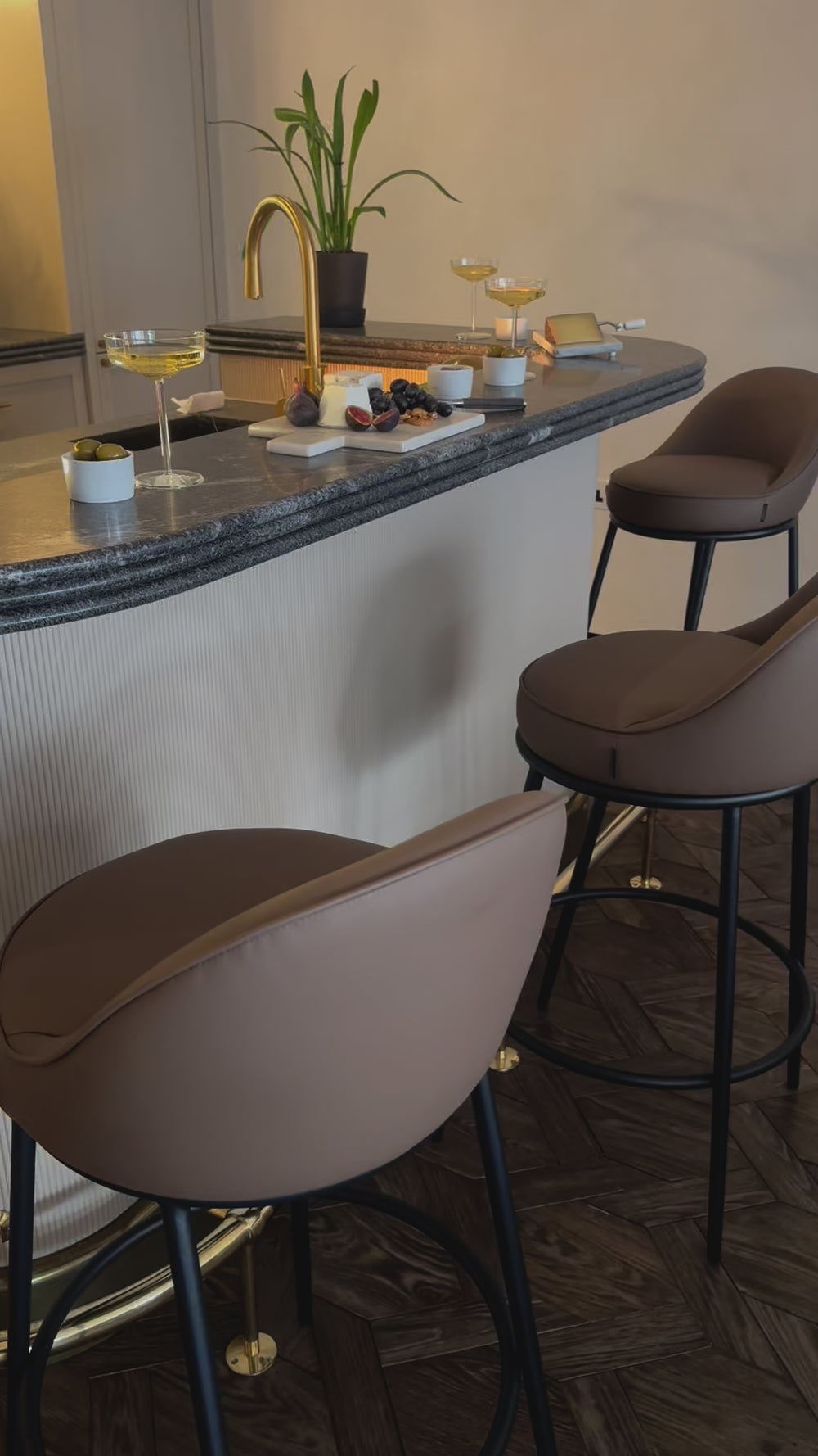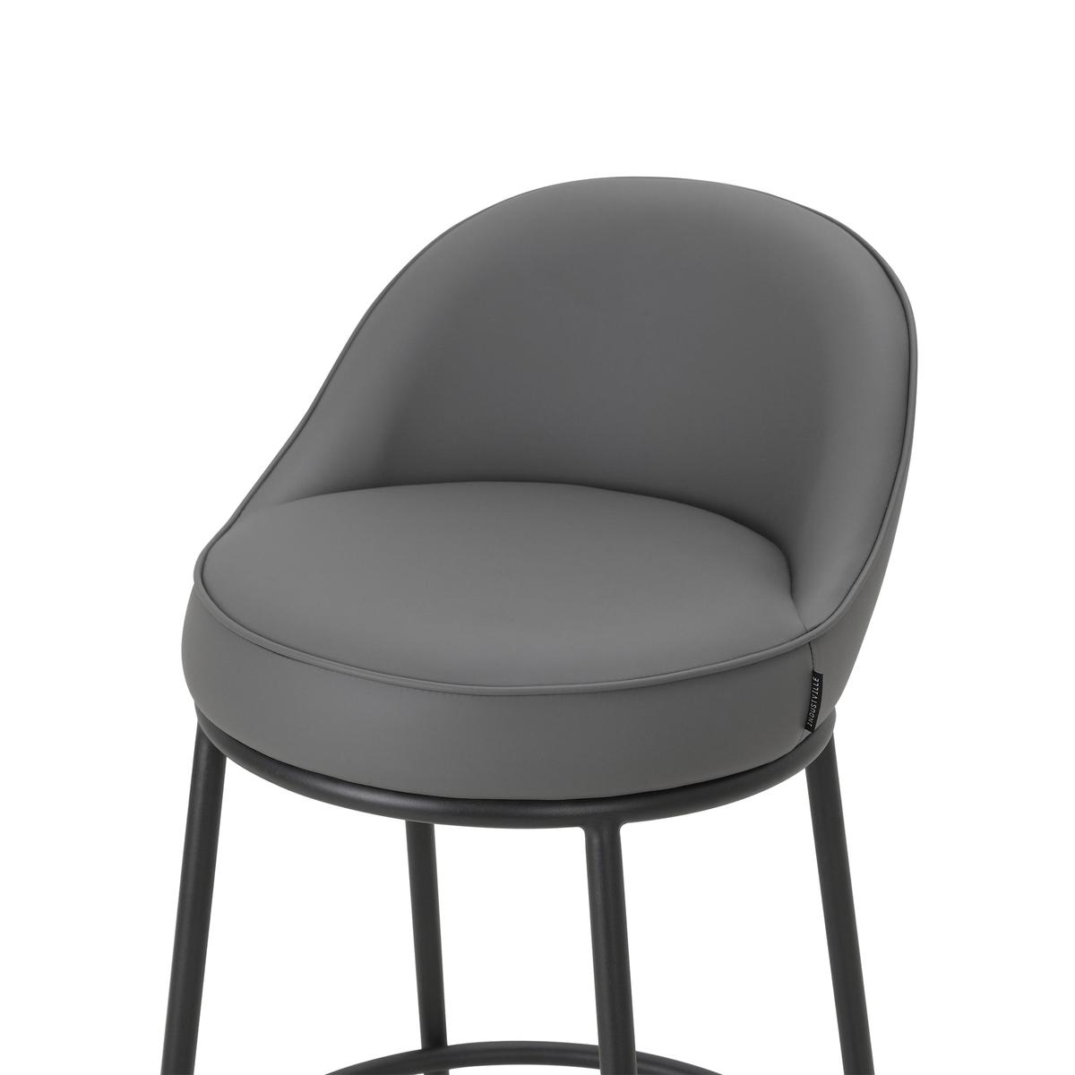 Elegant accents. Upgrade your dining space with the Sedona Black Metal Bar Stool in Dark Grey Faux Leather. The bold frame of our Sedona stools are styled with a curved backrest for a comforting impression, contrasted against cold, hard countertops for a more welcoming ambience around your kitchen.
