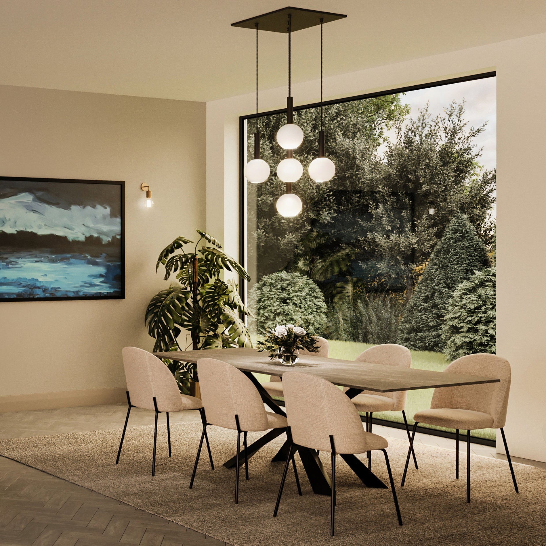 This inclusive lighting kit provides all you need for an unforgettable centrepiece, including a ceiling rose for easy installation, sleek cylinder bulb holder with five wires and five exquisite opal glass globe shades. All you need to add are five Edison-style LEDs from our range.